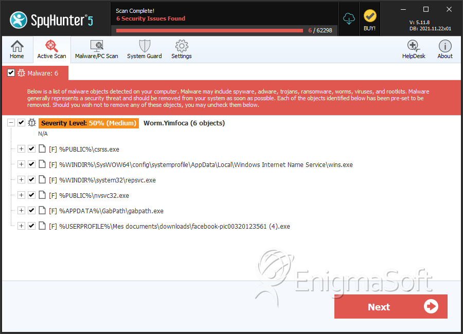 Ranking: The ranking of a particular threat in EnigmaSoft’s Threat Database.
