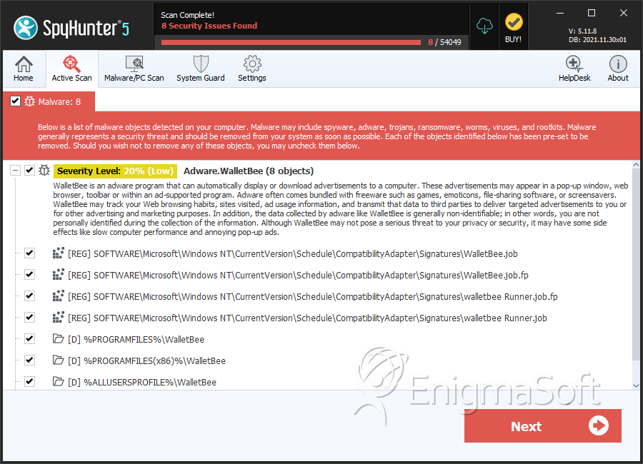EnigmaSoft Threat Scorecards display a variety of useful information, including: