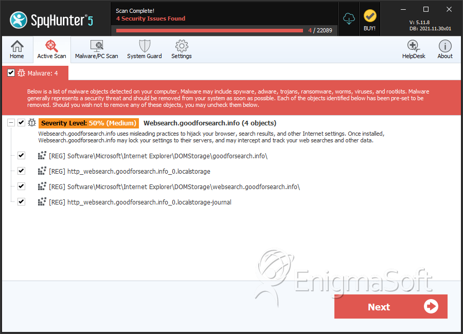 SpyHunter Detects & Remove Websearch.goodforsearch.info