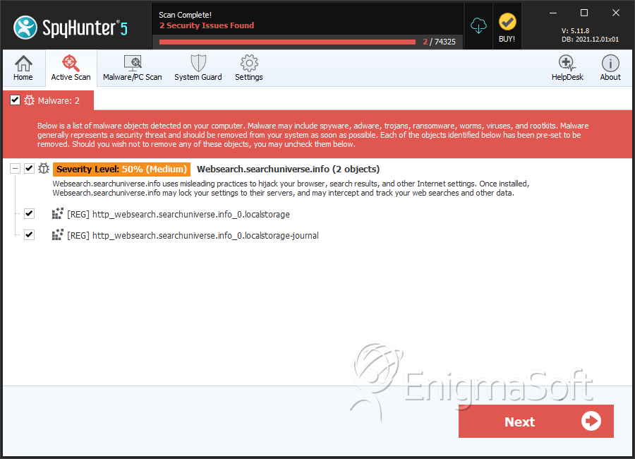 Ranking: The ranking of a particular threat in EnigmaSoft’s Threat Database.