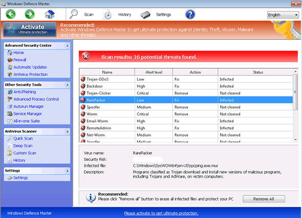 - Windows Defence Master spams the victim with bogus error messages and fake virus scan reports. All of these are meant to make computer users believe that Windows Defence Master has found numerous threat on the infected computer.