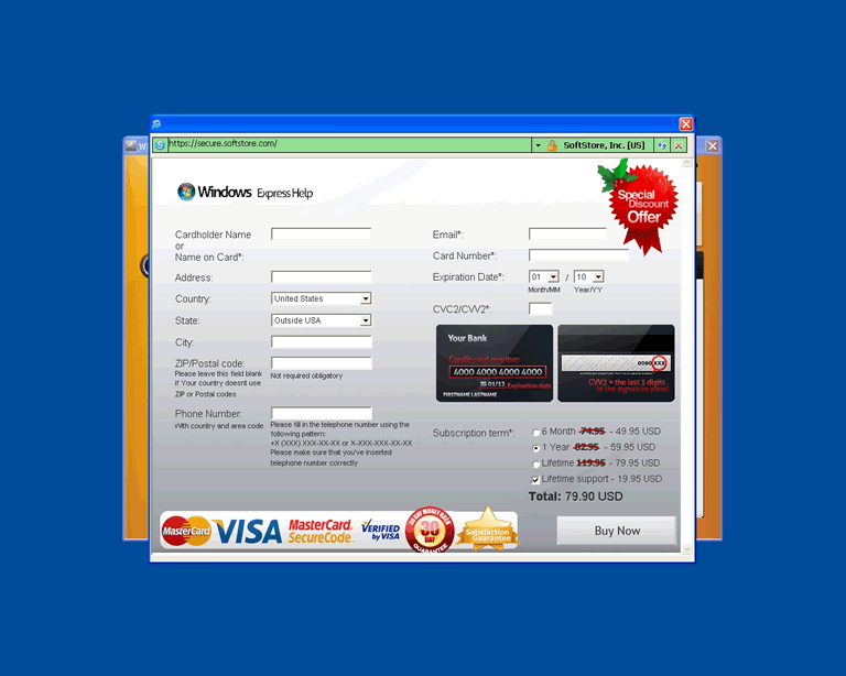 After you get the list of "results," Windows Express Help will tell you that in order to remove these threats completely, you have to pay for the full, licensed version of the program. (Windows Express Help wants you to think that you are somehow using a trial version.) If you agree to upgrade to the full version, Windows Express Help will direct you to its payment site, which is a malicious website made to look as though it is associated with some real company. However, the payment site is only the culmination of a scam, and if you pay money for Windows Express Help, you will never see anything in return for that money.
