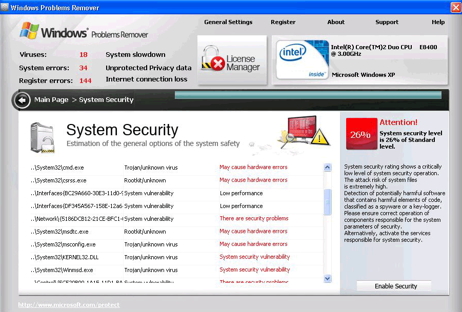 Of course, all malware detections made by Windows Problems Remover are fabricated therefore users are advised to ignore them. Users that encounter any type of security notification from Windows Problems Remover should scan their computers with reliable security software that can clear out all the rogueware and malware on a system.![]()