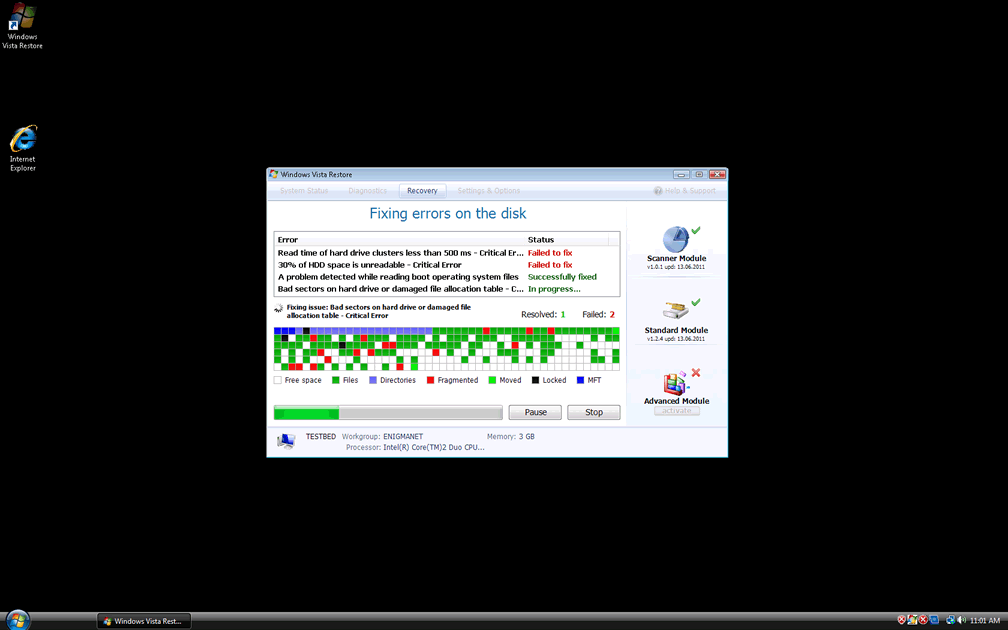 Windows Vista Restore is a dangerous piece of malicious software. Windows Vista Restore is downloaded and installed into user's machines without authorization, usually delivered by a Trojan. Windows Vista Restore can infect a computer to the point of making it useless. Windows Vista Restore is also difficult to remove, especially if Windows Vista Restore has been infecting the machine for a relatively long time.