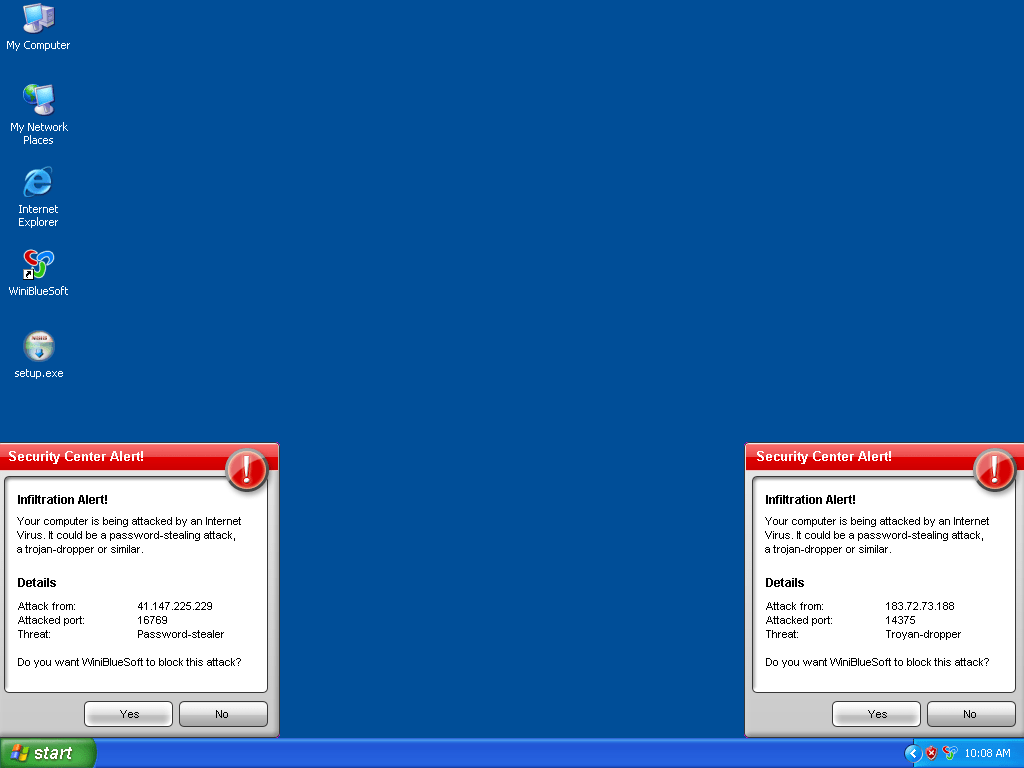 WiniBlueSoft is a fake antispyware program that use fake scan results to encourage you to purchase their full version. Once installed, WiniBlueSoft, prompts you with outrageous notifications and popup alerts warning you of imaginary spyware or malware infections.