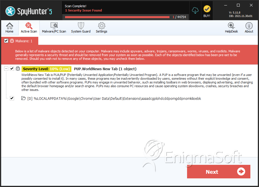 The peculiar thing about this extension is that it is developed by InMind, an unknown software developer. Judging by the website of the extension and its qualities, security experts suspect that WorldNews New Tab may be another browser extension developed and distributed by Mindspark Interactive Network, a company with a poor reputation because of its dubious toolbars and browser extensions. The WorldNews New Tab is certainly something you don't want to install on your computer, so make sure to decline all offers to install this extension. If you have already made the mistake of installing the Worldnews New Tab extension, you should try to remove it with the help of a potent anti-malware software suite.