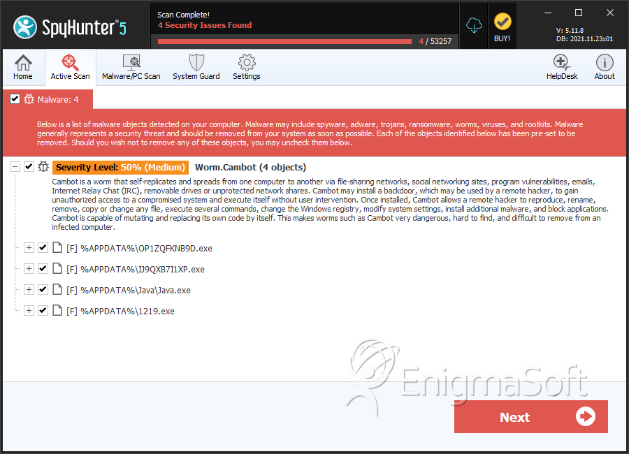 SpyHunter Detects & Remove Worm.Cambot.A
