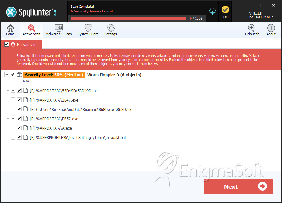 SpyHunter Detects & Remove Worm.Floppier.D