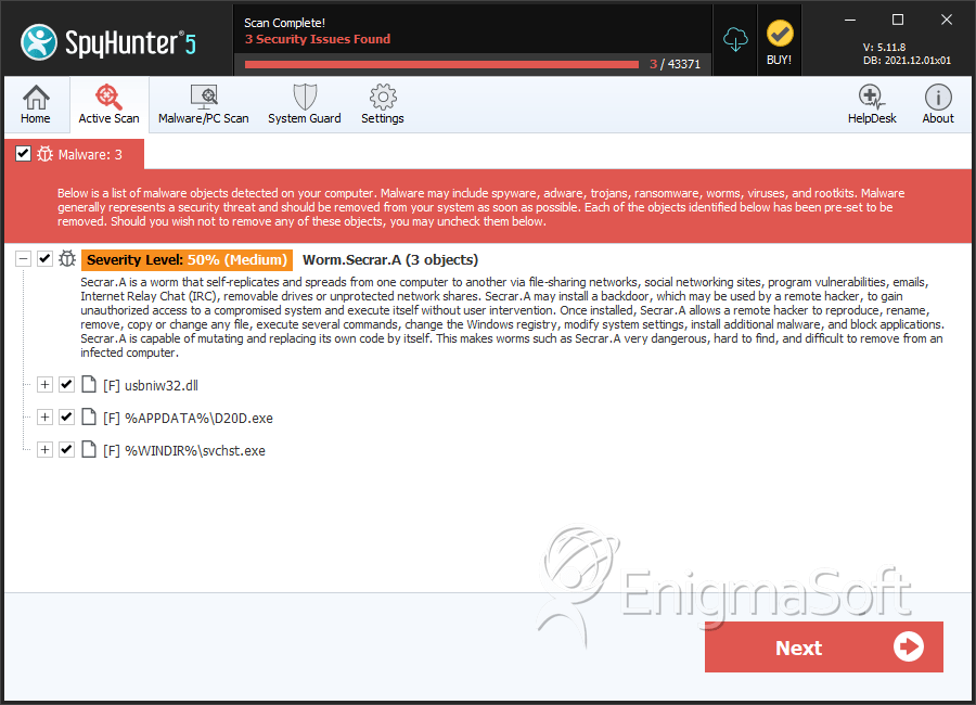 SpyHunter Detects & Remove Worm.Secrar.A