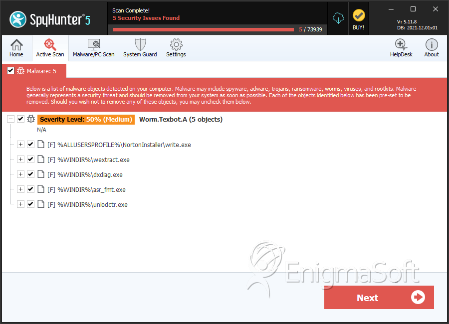 Ranking: The ranking of a particular threat in EnigmaSoft’s Threat Database.