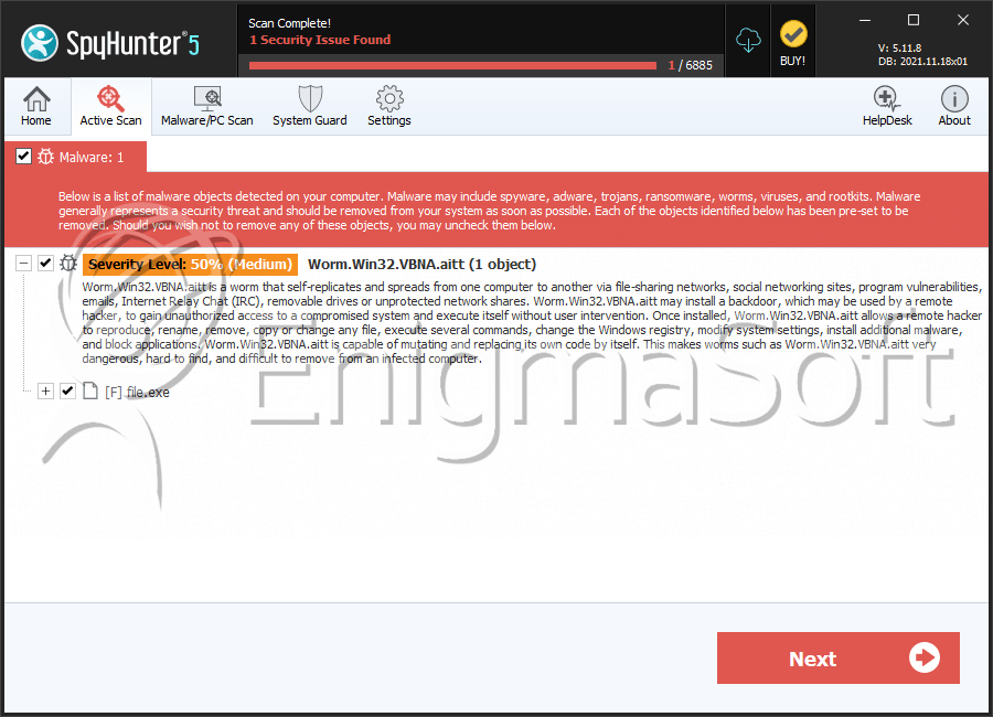 SpyHunter Detects & Remove Worm.Win32.VBNA.aitt