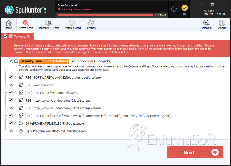 EnigmaSoft Threat Scorecards display a variety of useful information, including: