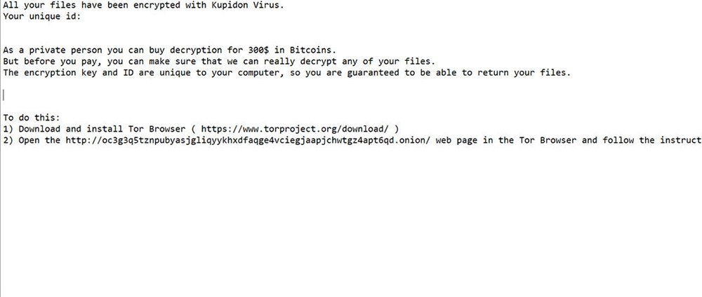 Kupidon勒索软件 Kupidon Ransomware是一种快速传播的恶意软件威胁,已知可以加密受感染PC上的文件。 Kupidon Ransomware传播的方法是通过垃圾邮件作为无害文本文件附件进行传播,然后可能在计算机用户不知情的情况下加载。加密文件后,Kupidon Ransomware可能会显示赎金票据,要求付款,要求恢复加密文件。 阅读更多 |