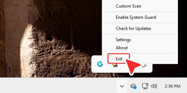 右键单击SpyHunter图标,然后选择“退出”。