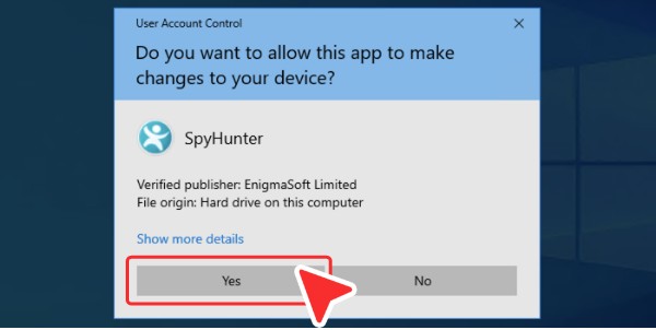 如果出现“用户帐户控制”对话框,询问“是否允许此应用对您的设备进行更改? ”,请单击“是”。这是 Windows 操作系统的要求,以便停止 SpyHunter 的核心服务。