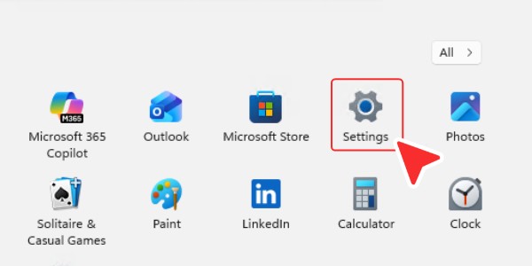 点击“ Windows 开始”按钮(或按“ Windows 键”+“ Q ”),然后点击“齿轮”图标打开“电脑设置”。 -