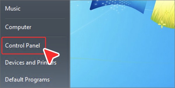 点击 Windows 开始按钮,然后点击右侧菜单中的“控制面板”。 -
