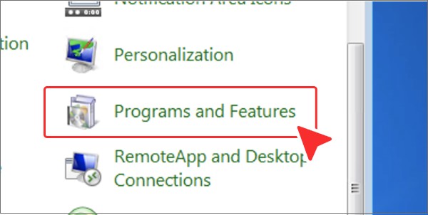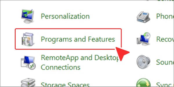 在控制面板窗口中,单击“程序和功能”。 -