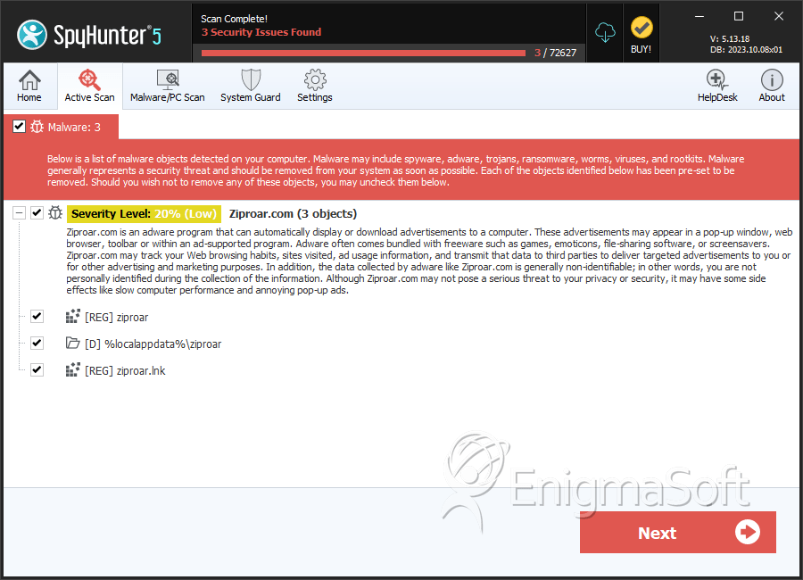 Ranking: The ranking of a particular threat in EnigmaSoft’s Threat Database.